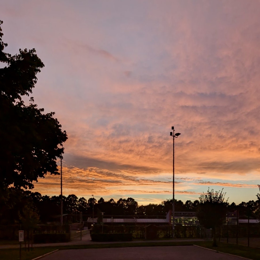 Das Licht war ein Geschenk. Auf der einen Seite dieses Spiel der Sonne in den Bäumen. Und gleichzeitig auf der anderen Seite ein Sonnenuntergang, der so aussah, als hätte jemand ihn mit Buntstiften nachgezogen.